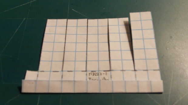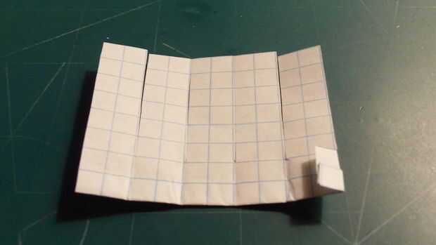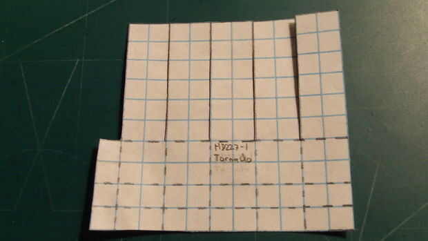Cut along the solid lines you made previously. Éstos completan los rotores ellos mismos. Una vez que han cortado cada uno de ellos por consiguiente, doblar por la línea punteada en la parte inferior del fuselaje. Cuando esto esté hecho, doblar por la línea punteada vertical. Después de esto, doble los rotores hacia abajo a lo largo de la línea de puntos horizontal debajo de ellos. Después de esto, su Tornado debe aparecer como se muestra en la última fotografía.