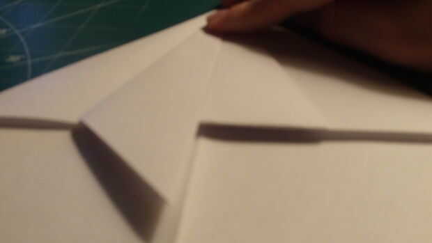 a lo largo de la línea de la superficie de sustentación, doblar las dos aletas debajo de la línea.