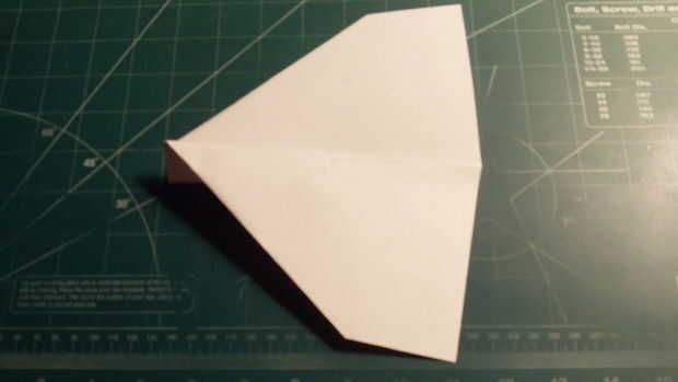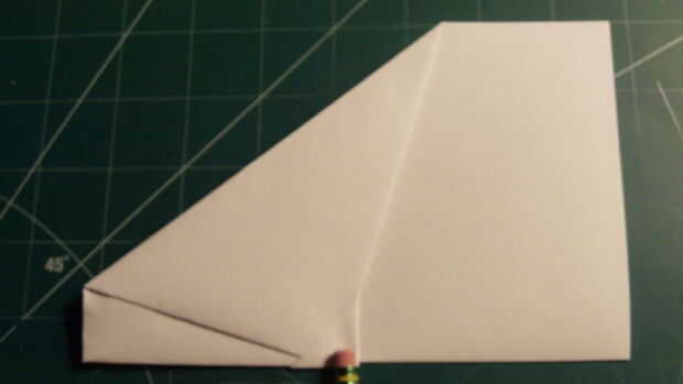 Plegar el plano a lo largo de su centro. Luego doble el ala hacia abajo, así que la raíz va desde el borde interior del doblez del barrido a la parte posterior de la tapa de centro.