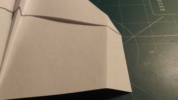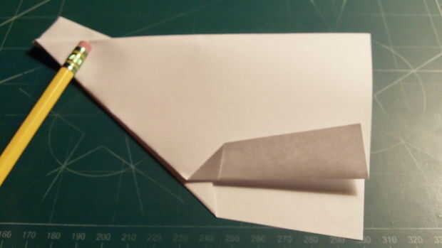 Para hacer aletillas de su avión, doble el papel a 3/4 de pulgada en de los extremos del ala para arriba, paralelo del fuselaje. Una vez que ambos han recibido pliegues, doblarlas para que cuelga de la aletilla por debajo el ala.