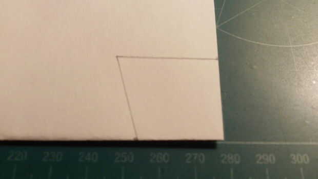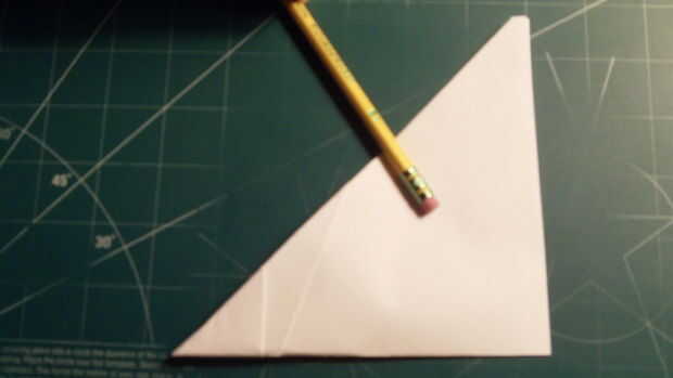 Su avión del doblez por la mitad a lo largo de su centro. Luego marque 1 en desde el borde de fuga a lo largo del pliegue del centro y 1 pulgadas de la línea central a lo largo del borde posterior. Luego marque una línea estiramiento 1,25 pulgadas de la marca de 1 pulgada a lo largo del borde posterior. Entonces conecte la línea 1,25 para la marca de 1 pulgada de línea de centro.