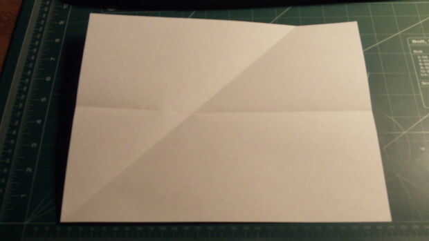 Iniciar la construcción doblando el papel por la mitad a lo largo de su longitud. Luego doblar una esquina de su papel en el borde del lado opuesto. Luego abrir y repetir del otro lado. Luego tire la mitad superior de la X en la parte inferior la mitad.