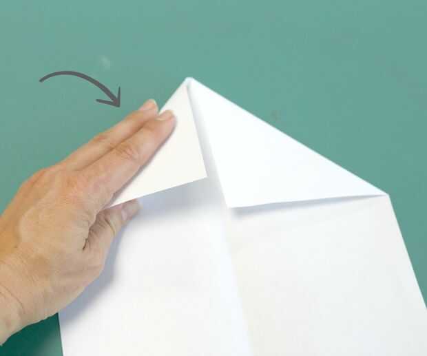Doble cabina de su avión de papel para que las esquinas del colgajo se reúnen en la línea de centro.