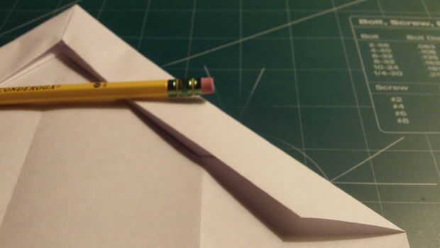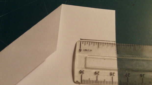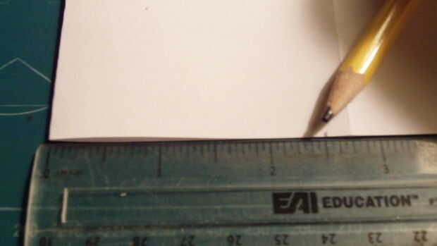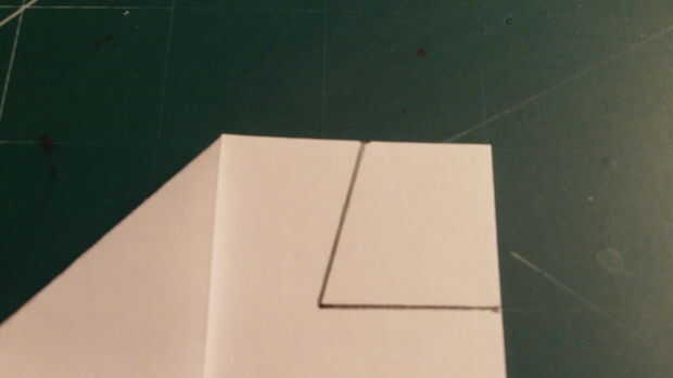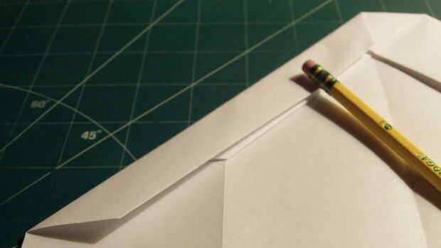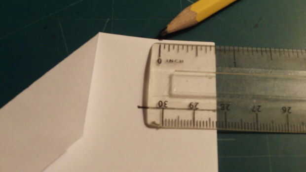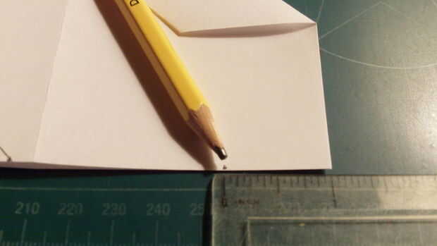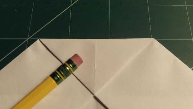 Mide 2,5 pulgadas desde el borde de fuga a lo largo del pliegue del centro, hacer una marca y luego medida 2.5 pulgadas hacia afuera desde el pliegue de centro a lo largo del borde posterior y haga una marca. Luego conecte las dos marcas.
