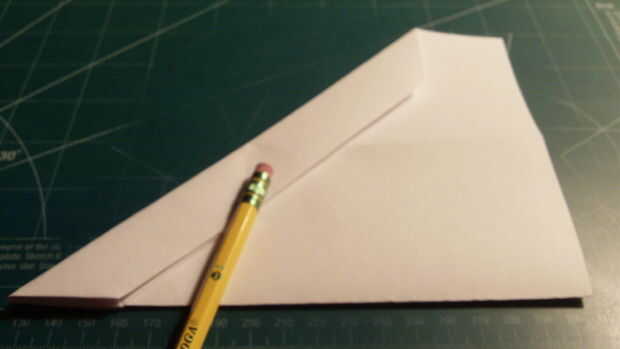 Después de haber terminado la medición de lo que será el contrapeso, empezar a medir las aletas verticales. Encontrar el punto 1 pulgada en desde la punta del ala a lo largo del borde posterior y haga una marca. Luego de esta marca mide 1 pulgada en y hacer una línea y una marca. Luego a lo largo de la punta del ala, medir 0,75 pulgadas desde el borde de fuga y haga una marca. Luego conectar esta marca a la que acaba de hacer.