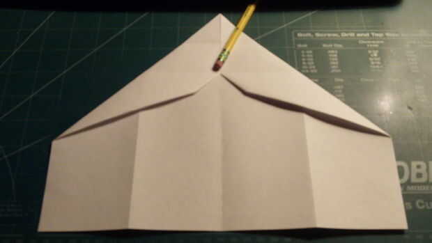 Se trata de cómo hacer el avión de papel más rápido que he visto. Llaman el águila.Paso 1: Doblar por la mitad Este es un paso fácil. Sólo doblar una hoja de 8,5 x 11" de papel en medio abajo el centro como en la foto y luego abrirlo para arriba otra