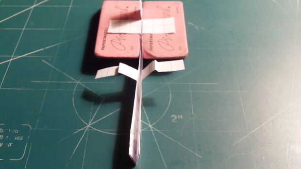 Después de haber cortado todo el fuselaje. Comenzar a doblar por la línea punteada. Después de haber doblado las líneas correctamente, debería aparecer como se muestra en la segunda foto.