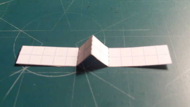 Ahora se pliega el ala a la forma apropiada. En primer lugar, tomar su ala y doblarlo por la mitad de ancho. Entonces se despliegan todos menos 2 filas de estas cajas.