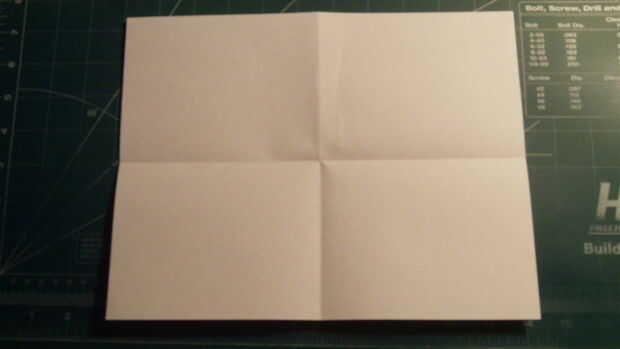 Primero, dobla tu papel por la mitad lo largo. Luego dóblalo a la mitad ancho. Su papel ahora debe ser doblado en cuatro partes.