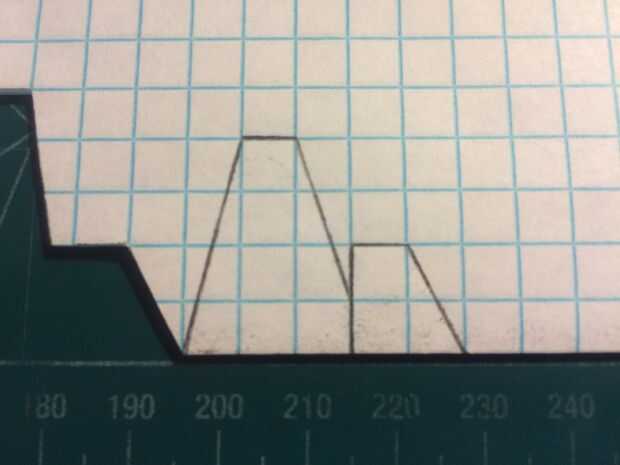 En primer lugar, comenzar por plegamiento eres tu papel milimetrado en la mitad (excepto tres cajas en el lado perforado). Una vez que el papel ha sido doblado adecuadamente, haga dos marcas--11 cajas full apart. Use una regla para hacer una línea recta con una longitud de 10 cajas directamente a 1 fila de cajas de las dos marcas que acaba de hacer. Luego realizar el timón y contrapeso como se indica. Siga las marcas de la fotografía. Luego, marque los largueros de ala y tren de aterrizaje. Por detrás, mida 1 caja hacia adelante y haga una línea sólida larga 2 cajas. Medir 1 caja de principio de línea horizontal y marcar una línea vertical punteada. Una vez que todo está marcado hacia fuera, cortar el fuselaje. A lo largo de la parte inferior del fuselaje, medir 4 cajas de la parte posterior. En la parte posterior, medir cajas de 0,5 por encima de la parte inferior del fuselaje. Haga una línea diagonal que conecta estas dos marcas.