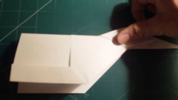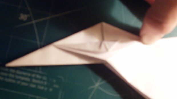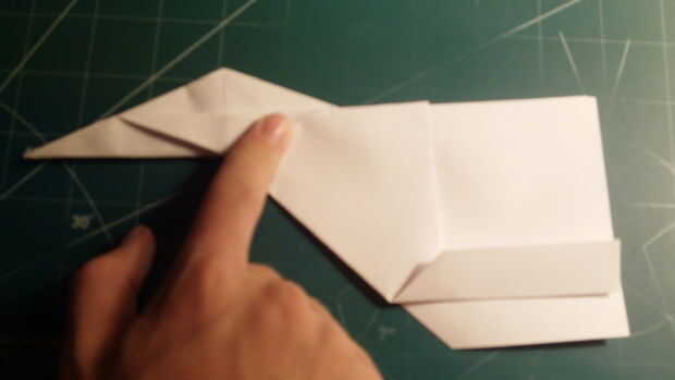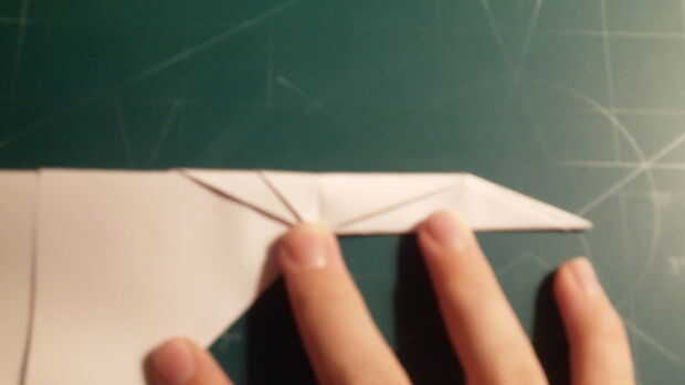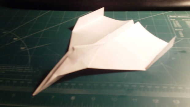 Para hacer la aleta delantera proporcionan más estabilidad, doble sobre la raíz del ala a cada lado. Una vez que se dobla cada lado, asegúrese de que ambos son angulados a 45 grados.