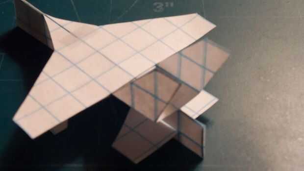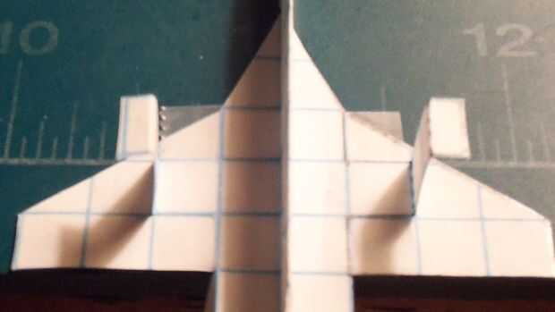 Corte sus estabilizadores horizontales y deslícelos a través de la abertura en el fuselaje que hiciste anteriormente. Cuando a través, doble hacia arriba y aplique la cinta en la parte inferior; luego doble hacia abajo. Aplicar una grapa en la zona del contrapeso. Esto habrá completado su avión.