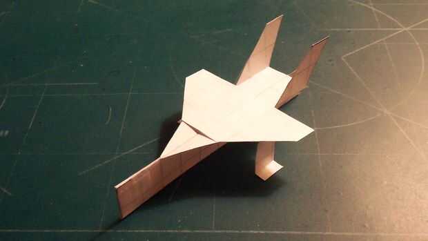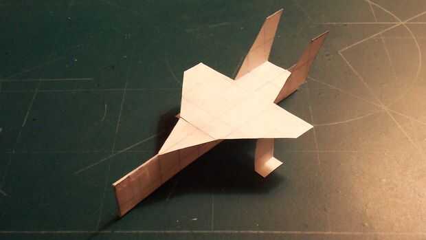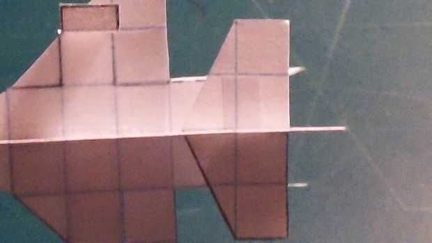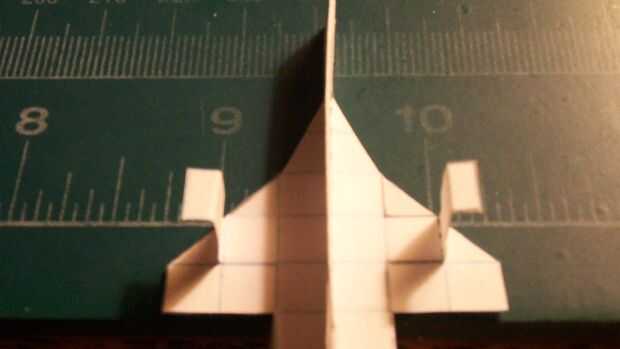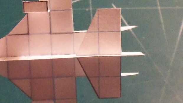 Una vez que ha terminado con las alas, cortar sus estabilizadores horizontales y deslícelos a través de la abertura en el fuselaje que formuló. Cuando a través, doble hacia arriba y aplique la cinta en la parte inferior; luego doble hacia abajo. Aplicar una grapa en la zona del contrapeso. Esto habrá completado su avión.