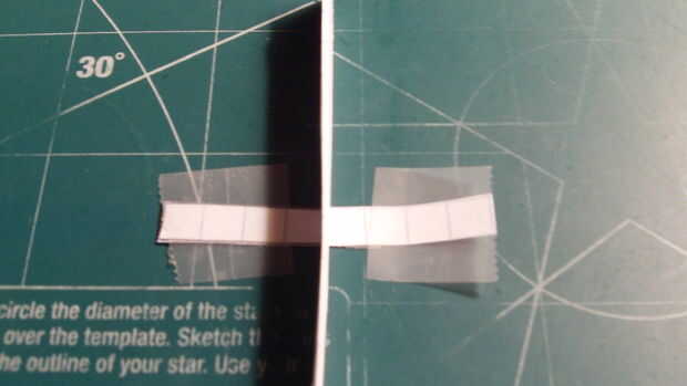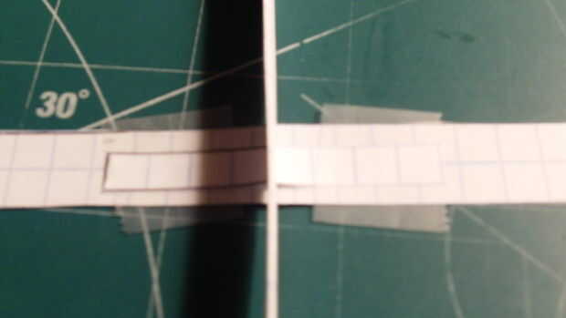 Aplique cinta para mástiles de su avión antes de aplicar el ala. Cuando alinee el montaje del ala, la línea plana hecha en él centro de pliegue con el fuselaje. Luego empuje la cinta hacia abajo con el dedo. Una vez que todo está grabado, corte voladizo todos con tijeras y deseche.