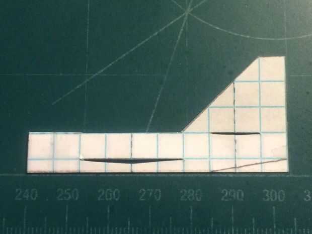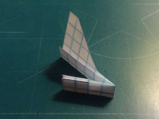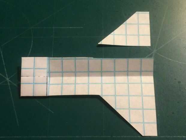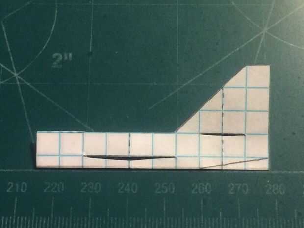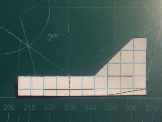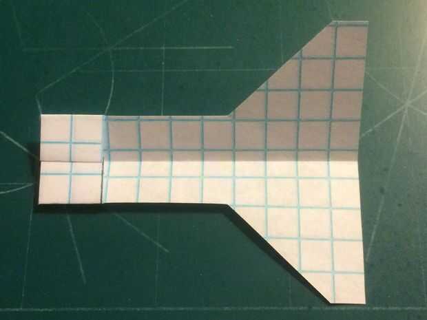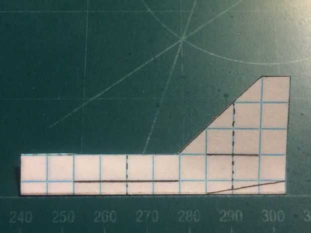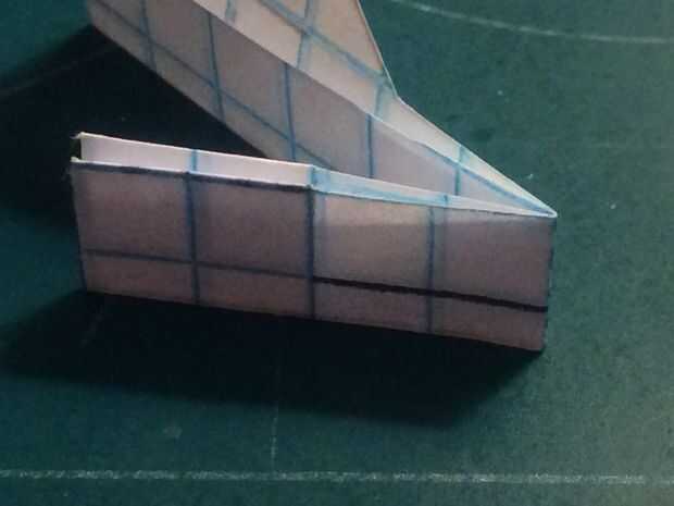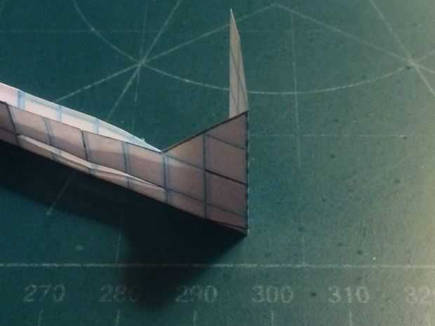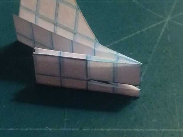 Comenzar a construir el fuselaje doblando los contrapesos en el fuselaje. Una vez han sido doblados, revelan el fuselaje y cortar el estabilizador vertical derecha. Una vez hecho esto, restaurar el pliegue. Después de hacer esto, doble el fuselaje a lo largo de las cajas de línea punteada vertical dos a popa de los pliegues de contrapeso. Después de realizar el corte y restaurar el fuselaje de su estado doblado, doble estabilizador vertical hacia adelante a lo largo de la línea de puntos que indica el centro de lo que será ser la ranura de los estabilizadores horizontales, luego se corta. Cinta de designado.