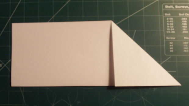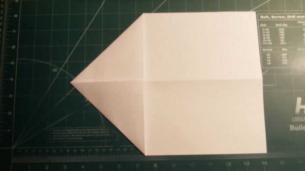 Empezar doblando una pieza de papel por la mitad lo largo. Luego, jale las esquinas en el centro. Una vez que ambas esquinas se pliegan en el centro, atrás del doblez de centro así que el aerodinámico "limpia"