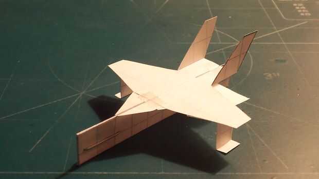 Corte sus estabilizadores horizontales y deslícelos a través de la abertura en el fuselaje que hiciste anteriormente. Cuando a través, doble hacia arriba y aplique la cinta en la parte inferior; luego doble hacia abajo. Aplicar una grapa en la zona del contrapeso. Esto habrá completado su avión.