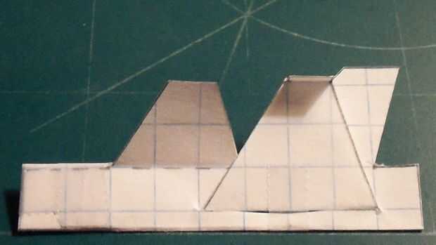 Cortó las alas y luego doble los extremos como se muestra. Tirar del ala a través de la fisura en el fuselaje, luego la cinta. Aplane las alas y canards para donde no tienen ninguna desviación anhedral. Esto completará tu StarComet.