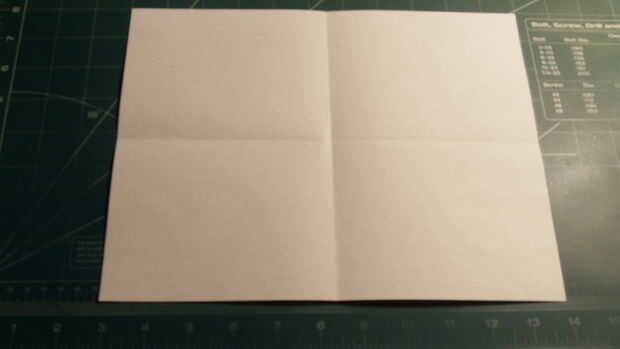 Doble el papel a lo largo de su longitud. Luego doblar por la mitad otra vez, para dar lugar a cuartos. A continuación, abra el documento. Debe tener un papel dividido en cuatro.