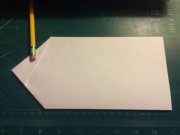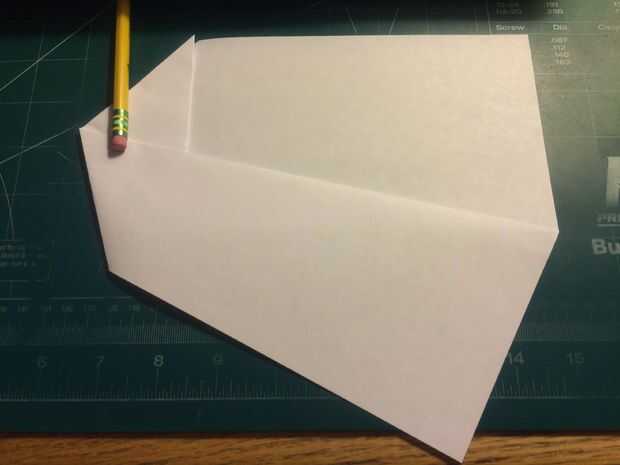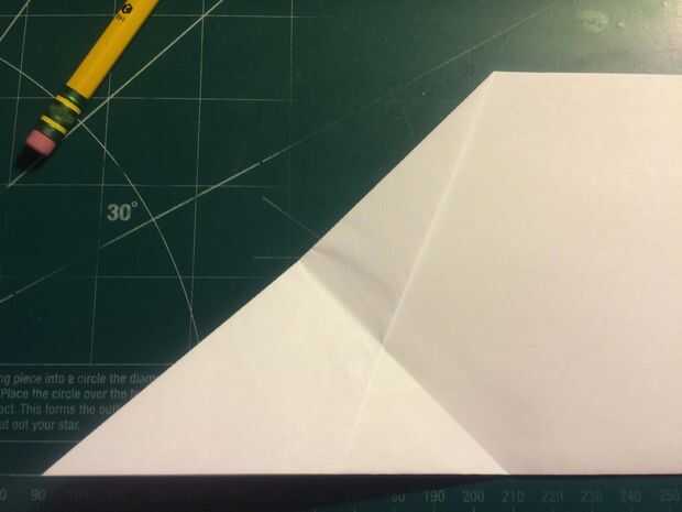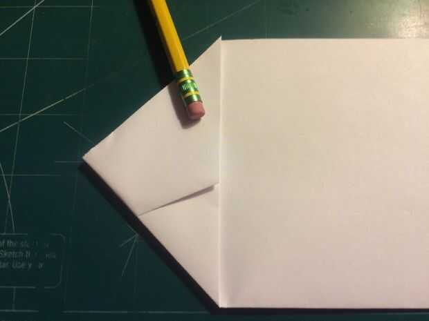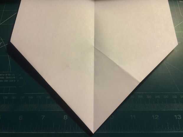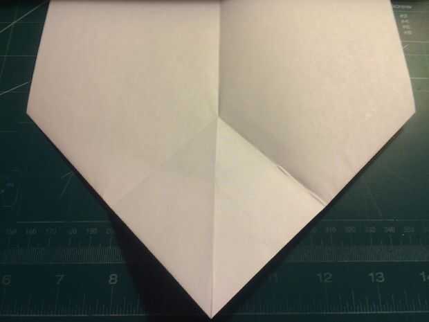 Tire de la punta de la nariz a la punta exterior de los pliegues de la esquina, luego pliegue. Después de hacer esto, despliegue y reformar a los pliegues como en la imagen para que todos los pliegues están doblados al igual que el pliegue de centro original. Una vez hecho esto, tire el triángulo en el centro como se muestra. Después de esto, pliegue las alas hacia abajo como se muestra.