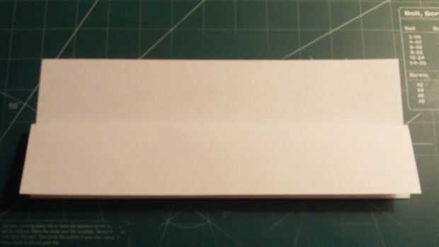 Se trata de cómo hacer el avión de papel más rápido que he visto. Llaman el águila.Paso 1: Doblar por la mitad Este es un paso fácil. Sólo doblar una hoja de 8,5 x 11" de papel en medio abajo el centro como en la foto y luego abrirlo para arriba otra