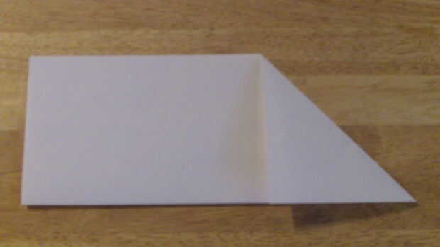 Primero, dobla tu papel por la mitad a lo largo de su longitud. Luego, jale las esquinas del papel en.