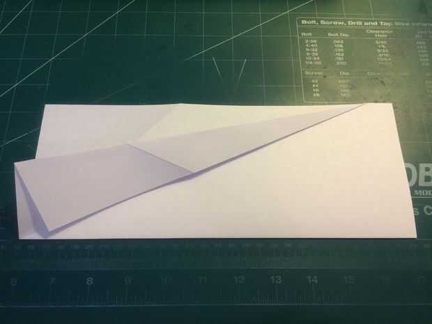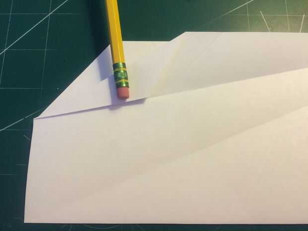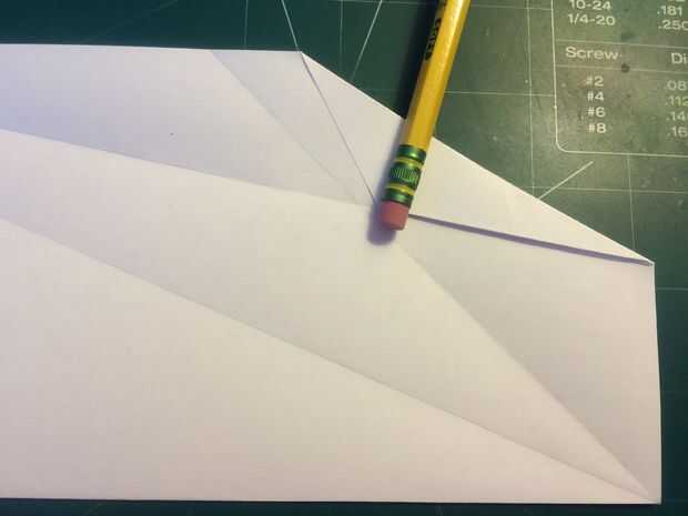 Tomar su papel y dóblela a lo largo de su longitud. Tire de las esquinas y doblar sus pliegues en el centro. Desdoblar el papel, luego doblar los bordes en los pliegues que ha hecho con los pliegues anteriores. Después de hacer esto, doblar las esquinas del papel hacia abajo en cada lado, como se muestra. Después de esto, doble los pliegues los pliegues hacia abajo sobre la parte superior de los mismos. Continúe plegar el papel a lo largo de los pliegues hasta que su papel coincide con la última fotografía para crear las superficies de sustentación.