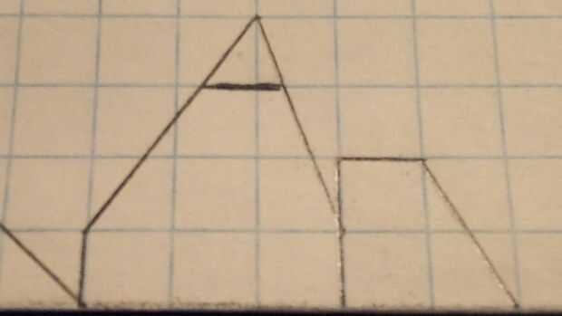 Después de que el fuselaje se hace, tomar otra hoja de papel que se dobla por la mitad a lo largo de las líneas de cajas. Marcar el ala como se muestra (1 caja de constante acorde a la raíz y una porción de vanguardia barrida frente a este cuadro de 2 cajas de acorde eliminado cada 3 cajas de luz y 1 caja de acorde eliminado cada 3 cajas de luz). 1 caja en de los extremos del ala, hacer una línea continua paralela a la tapa del centro como se muestra. Luego cortar el ala. Medir 2 cajas a lo largo del pliegue, medir dos cajas hacia arriba de una marca y hacer otro punto. Luego trace una línea diagonal conectar esta nueva marca a la que más lejos. De la marca que acaba de realizar, medir una caja más lejos de la ahora conectado a la línea y haga una marca. Esboce una línea entre esta marca y la otra marca a lo largo del pliegue. Luego corte los estabilizadores horizontales.