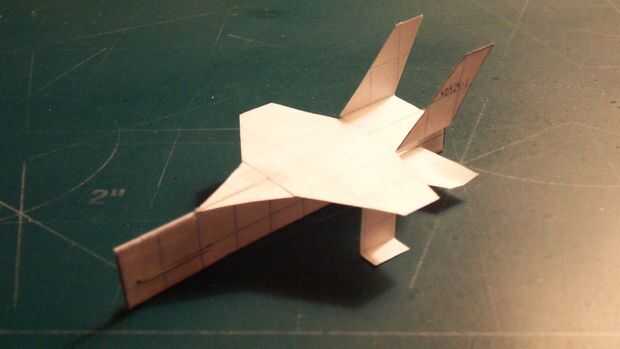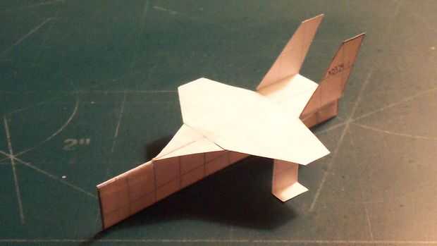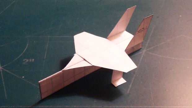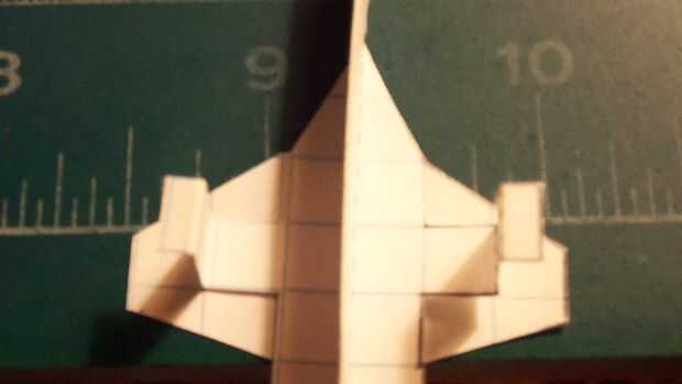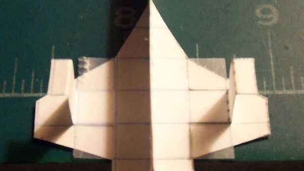 Una vez que ha terminado con las alas, cortar sus estabilizadores horizontales y deslícelos a través de la abertura en el fuselaje que formuló. Cuando a través, doble hacia arriba y aplique la cinta en la parte inferior; luego doble hacia abajo. Aplicar una grapa en la zona del contrapeso. Esto habrá completado su avión.