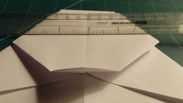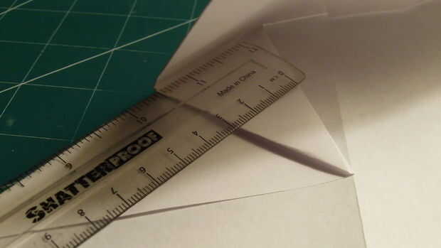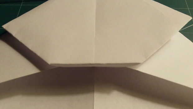 Doblar el pliegue de "barrido" (como se ve en la foto #1 aquí) hacia abajo. Repita en el otro lado. Luego doblar y aplanar el "bolsillo" de papel hacia abajo a lo largo de la línea de centro del papel. Cuando éste es aplanado, doble 'lock' bajo.