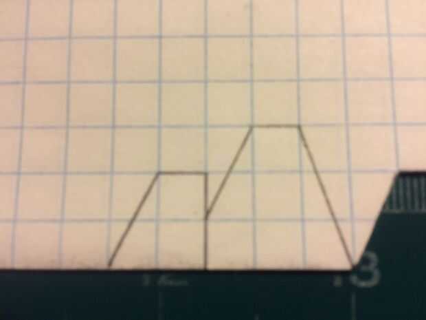 Doble el papel por la mitad para que la mitad de una caja está en la línea de pliegue. Haga una marca, luego mida 6 cajas atrás y hacer otra marca. De esta segunda marca, mida la mitad una caja arriba, tres cajas detrás. De esta tercera marca, medir y marcar 3 cajas más hacia arriba 1 hacia atrás. Una caja delante y debajo de la marca pasada; luego realizar una línea de dos cajas de estiramientos hacia adelante de esta quinta marca. Más allá de esto, las fotos explican las otras marcas con menos confusión--mejor que puedo explicar con palabras. Una vez que todo está marcado hacia fuera, cortar el fuselaje.
