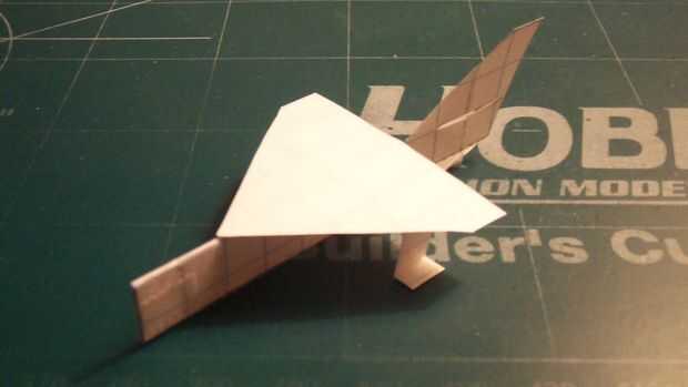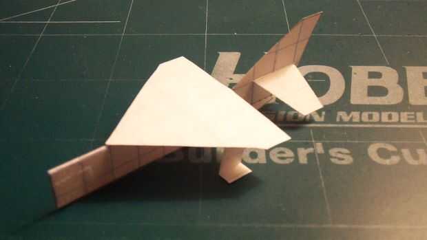 Cortar las alas de su StratoSerpent y los ponen debajo del fuselaje. Aplique cinta de designado para garantizar en el fuselaje. Después de asegurar las alas, cortar los estabilizadores horizontales. Hilo a través de su ranura y luego asegure con cinta como señalado. Aplicar una grapa en el área de contrapeso de la StratoSerpent para completarla.