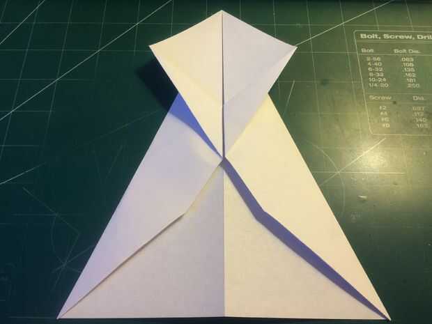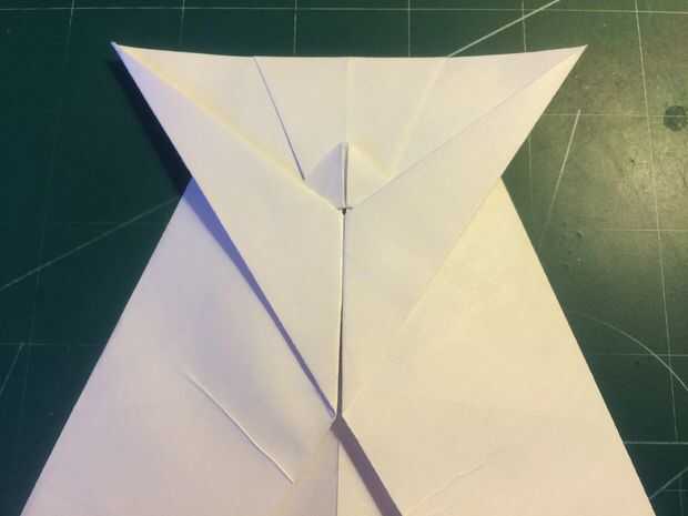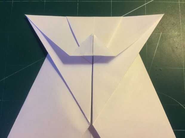 Tire el papel del doblez anterior hacia atrás para alinear el borde anterior con pliegue hecho por eso mismo doblez. Realice esto en ambos lados. Después de hacer esto, desarrollan este y, a continuación, tire el pliegue que se ha traducido en el primer pliegue. Doblar el papel a lo largo del pliegue original de cada lado. Después de hacer esto, tire del papel hacia atrás sobre el pliegue de centro a cada lado. Tire de la punta de la nariz hacia atrás por lo que los vértices del diamante son las puntas de la tapa. Línea de los pliegues para encontrar el borde posterior del pliegue de la nariz; Tire lo que sobresale hacia adelante otra vez. Después de que todo esto termine, meter el papel en la nariz como en la imagen.