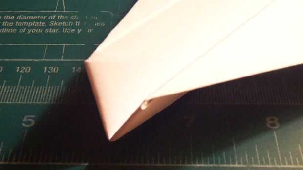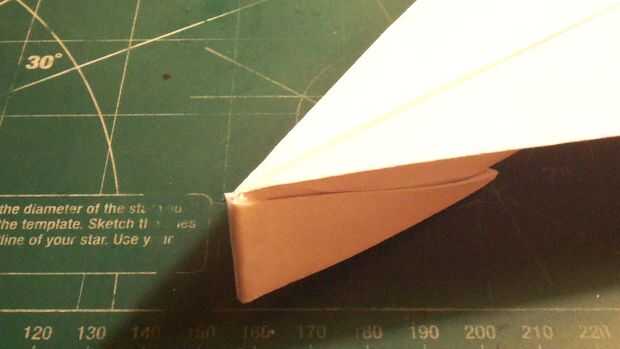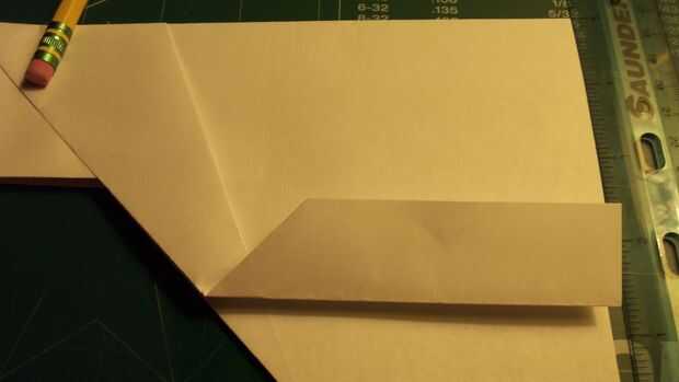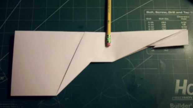 Doblar las alas hacia arriba y desde abajo, medida de 1 pulgada de la raíz del ala a lo largo del borde posterior y haga una marca. Medir una más 0,75 pulgadas de esta marca y hacer otra. De cada uno de estos mide 0,375 pulgadas adelante, perpendiculares a la arista posterior.