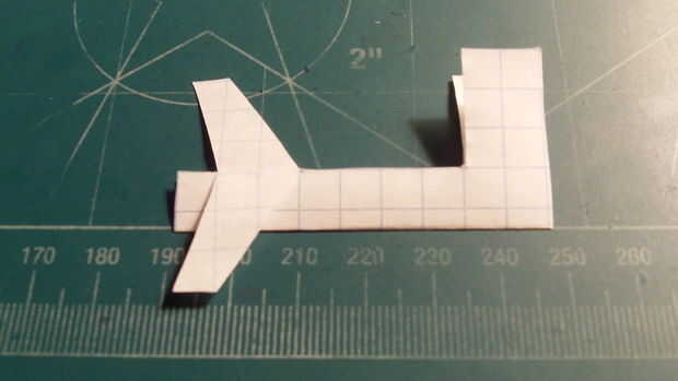 Empezar a hacer su timón mediante la separación del estabilizador vertical. Luego, corte una de las dos capas de papel donde el timón debe estar apagado (generalmente interrumpe la izquierda yo). Después ha cortado estas cajas apagado, usted puede deshacerse de ellos. Entonces, después de haber cortado todo el fuselaje. Comenzar a doblar por la línea punteada. Después de haber doblado las líneas correctamente, debe cortar a lo largo de la línea en medio del fuselaje. Hacerlo doblando el fuselaje a la derecha, hacer un corte y repetir el doble a la izquierda. Luego únalos con cinta adhesiva el fuselaje en el frente, hacia atrás (contra el estabilizador vertical) y en el pliegue de contrapeso. Luego doblar su aleta vertical a lo largo de la línea punteada y corte a lo largo de la línea continua en el centro del fuselaje y luego desdoblar.