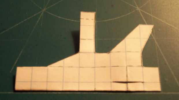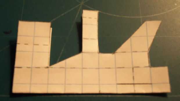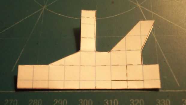 Empezar a hacer el fuselaje de su fuselaje lo cortando y doblando el contrapeso. A continuación, cortar a lo largo de la línea horizontal como se muestra. Una vez hecho esto, el estabilizador vertical hacia adelante a lo largo de la línea vertical punteada del doblez y plegar el tren de aterrizaje y mástiles. A continuación se despliegan. Una vez este finalizado, cinta de designado.