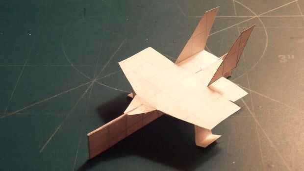 Corte y desplegar sus alas y su fuselaje invertido del tirón. Cinta el ala al fuselaje mediante la aplicación de cinta a los largueros, con la proyección de la apropiación del ala. Corte cualquier exceso cinta. Voltee la armadura de avión y luego aplicar la cinta en el borde de ataque del ala que se sienta encima de las extensiones de la raíz de vanguardia. Recorte sus estabilizadores horizontales y pase a través del fuselage debajo de los timones. Doblar para arriba una vez a través de y pegarlas al fuselaje. Una vez que se han montado estas superficies, añadir un elemento básico en la zona del contrapeso. Esta aplicación completa su Super SkyGnat.