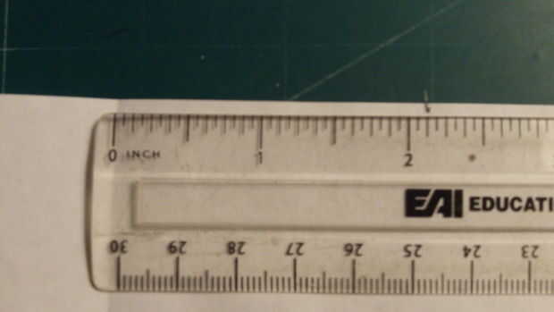 Poner su avión incompleta abajo de plano como se muestra. Luego llegar tu regla y mide 3/4 de pulgada de la doblez de contrapeso (a lo largo de la vanguardia barrida). Haga una marca aquí. Luego use su regla y medida de 2 y 1/8 pulgadas de la tapa de centro en la parte trasera del avión. Haga una marca aquí.