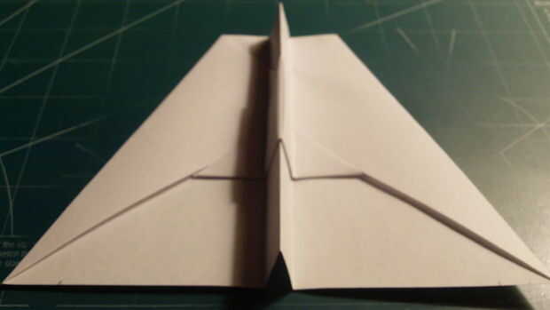 Su avión del doblez por la mitad a lo largo de su centro. Luego haga una marca en 0,75 pulgadas desde el pliegue de centro en la parte delantera del avión. Luego marque en cada ala 0,75 pulgadas desde el extremo del ala a lo largo del borde posterior. Hale el ala hacia abajo manteniendo el ángulo de incidencia de 0 grados (puede hacerlo alineando el borde de fuga del ala con el fuselaje). Una vez que se dobla cada ala, puede doblar sus aletillas. Una vez más, como las alas, alinee los bordes de fuga de las aletillas con los de las alas.