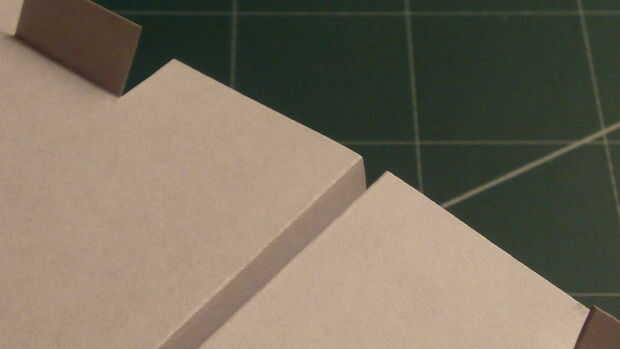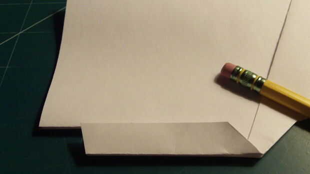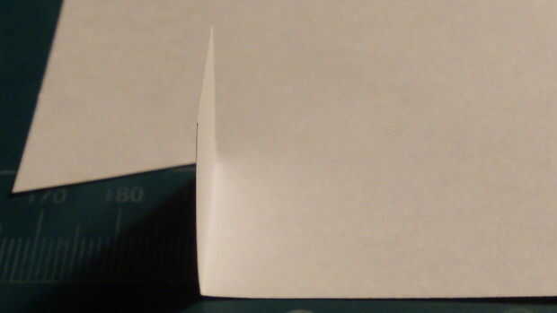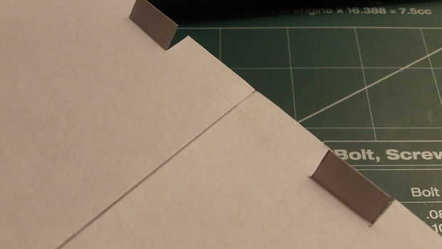Medir a lo largo del borde posterior 1,125 pulgadas de la raíz del ala y haga una marca. Luego mida una más 0,75 pulgadas de esta marca y hacer otra. De cada una de estas marcas, medir 0,375 pulgadas adelante y cortadas a lo largo de ellos. Luego tire del papel de estos adelante. Luego reducir pliegues de los ascensores a ~ 30 grados. Esto completará los ascensores. Desplegar las aletillas y aletas y hacerlos perpendicular a las alas. Luego con cinta de designado.