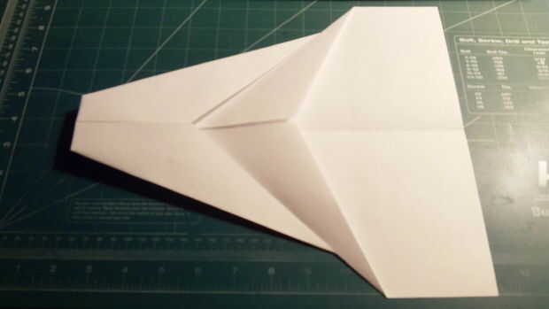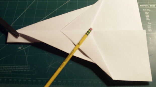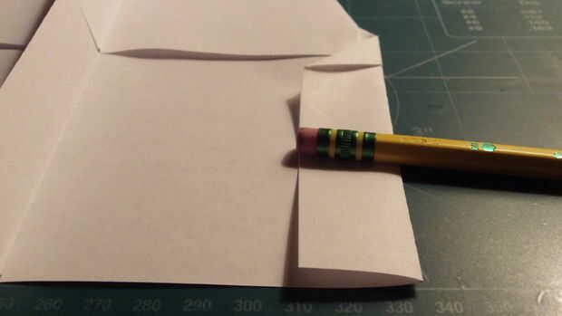 Después de que las alas han sido dobladas, medida 1 pulgada hacia adentro de cada ala y haga una marca. Luego doblar las aletillas para que sus pliegues se cruzan con las marcas.