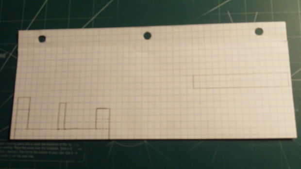 Luego hacer la cola (2 de 5 cajas), contrapeso (2 por 3 cajas) y largueros (1 por 4 cajas) como se muestra. Procede entonces hacer las alas marcando un ala alta proporción (14 por 2 cajas). Siga las marcas de la fotografía. Una vez que todo está marcado hacia fuera, cortar el fuselaje y las alas.