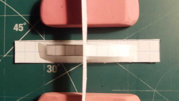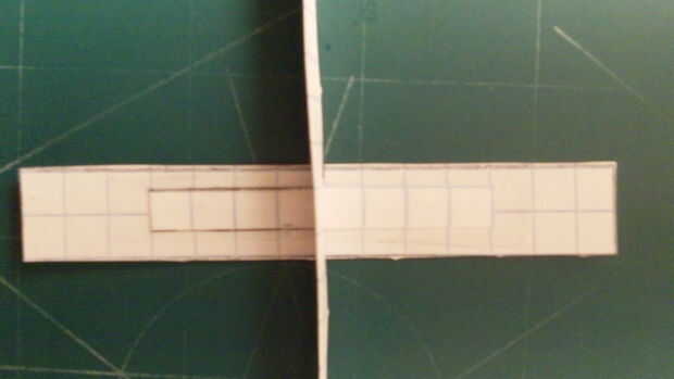 Con un lápiz, haga una marca en la línea de centro del ala (7 cajas de cada lado). Encienda su fuselaje invertido y aplique las alas a él. Después de esto, su Tomahawk será completa.