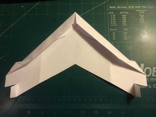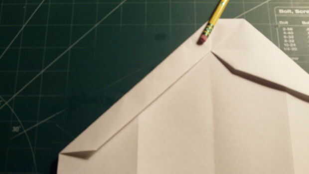 pliegues. Luego jale la vanguardia para que lo que fue la punta de la nariz Roma toca el pliegue de centro y repetir del otro lado. Luego dobla el papel por la mitad para que estos pliegues son en los papeles fuera de.