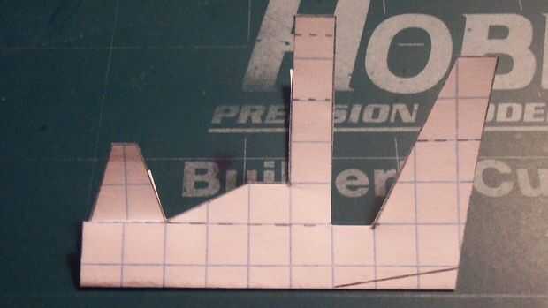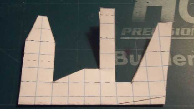 Cortar el fuselaje y pliegue el contrapeso en el fuselaje. Al hacerlo, asegúrese de permitir que los estabilizadores que se doblará hacia afuera como se muestra. Doble hacia abajo los estabilizadores horizontales, trenes de aterrizaje y mástiles. Una vez hecho esto, se despliegan los estabilizadores, patines y palos. Luego aplique cinta de designado.