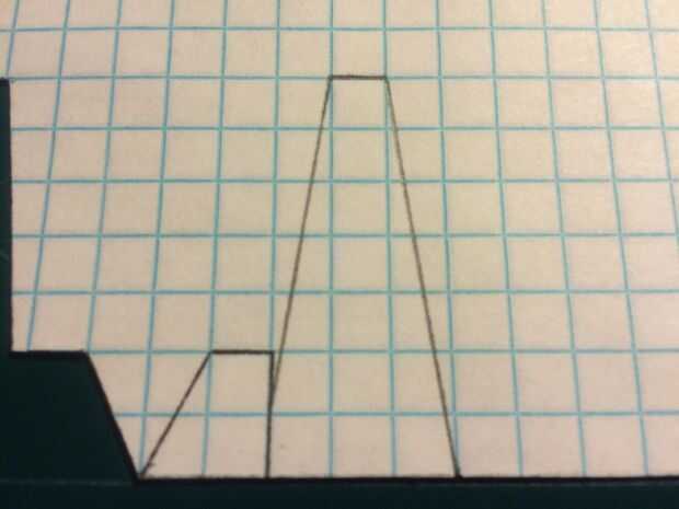 Después de que el fuselaje se hace, tomar otra hoja de papel que se dobla por la mitad a lo largo de las líneas de cajas. Marcar el ala como se muestra (1 caja de constante acorde a la raíz, un barrido de vanguardia de 1 caja de acorde que se decae cada 6 cajas hacia afuera de la caja acorde constante;) y un borde posterior barrido de 1 caja de decadencia a lo largo de las 7 cajas de envergadura. Esto completa las alas. Adicionalmente, la medida 2 cajas a lo largo del pliegue y 2 cajas arriba de un lado y hacia adelante el 1 cuadro. Luego trace una línea diagonal que conecta esta línea el otro borde de la línea a lo largo del pliegue. Esto hará que los estabilizadores horizontales. Luego recórtalo.