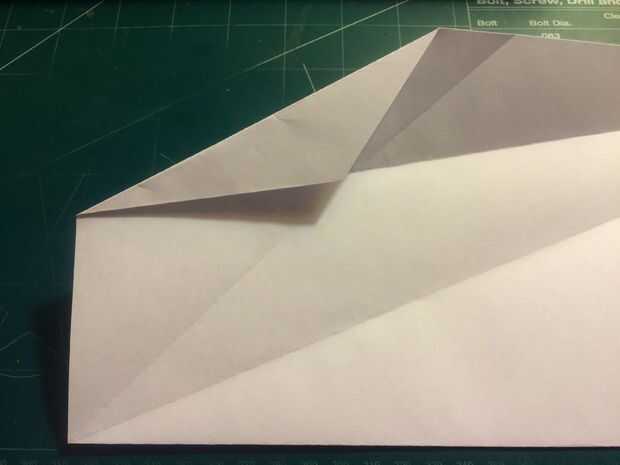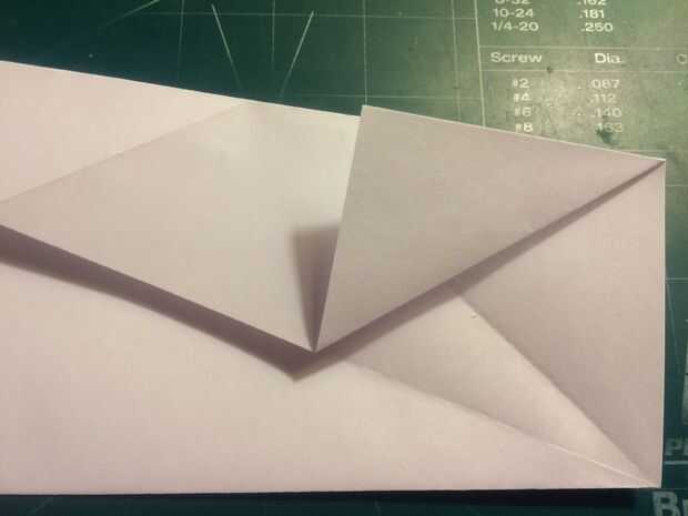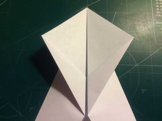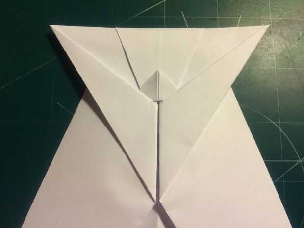Tire el papel del doblez anterior hacia atrás para alinear el borde anterior con pliegue hecho por eso mismo doblez. Realice esto en ambos lados. Después de hacer esto, desarrollan este y, a continuación, tire el pliegue que se ha traducido en el primer pliegue. Doblar el papel a lo largo del pliegue original de cada lado. Después de hacer esto, tire del papel hacia atrás sobre el pliegue de centro a cada lado. Tire de la punta de la nariz hacia atrás por lo que los vértices del diamante son las puntas de la tapa. Línea de los pliegues para encontrar el borde posterior del pliegue de la nariz; Tire lo que sobresale hacia adelante otra vez. Después de que todo esto termine, meter el papel en la nariz como en la imagen.