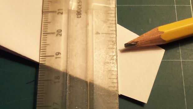 Fold the aircraft in half, then fold the canards down. Después se doblan los canards, plegar las alas inmediatamente por encima de ellos. Alinee los bordes de fuga con los del fuselaje para mantener un ángulo de incidencia de cero grados. Mide 0,75 pulgadas desde el borde del extremo del ala en cada lado. Alinee los bordes rectos con las del resto de la ala y el pliegue, plegado en la marca. Cinta en el frente, parte posterior, a través de las raíces del ala cerca de la parte posterior y por detrás los canards.