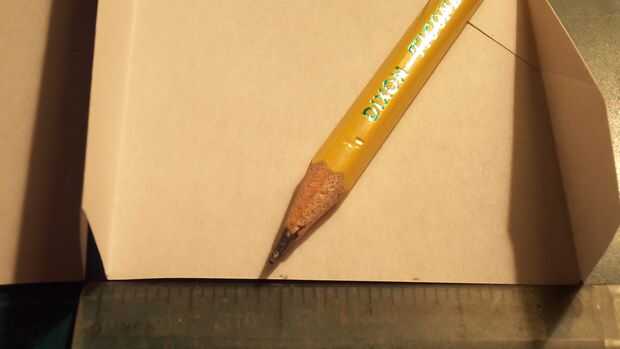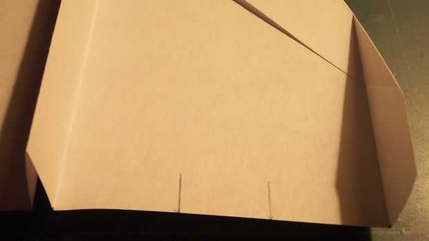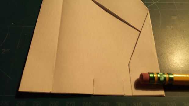 Fold the airframe in half. Altura 0,75 pulgadas desde el pliegue de centro y de los extremos a lo largo del borde posterior del ala. Doble las alas hacia abajo y luego plegar las aletillas. Mide 1 pulgada de la raíz del ala a lo largo del borde posterior y haga una marca. De esa marca, medir una más 0,75 pulgadas y haga una marca. De cada una de estas marcas, mide 0,375 pulgadas hacia adentro. Luego corte a lo largo de estas líneas.