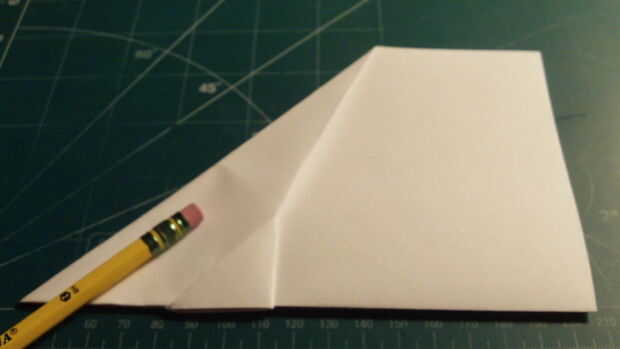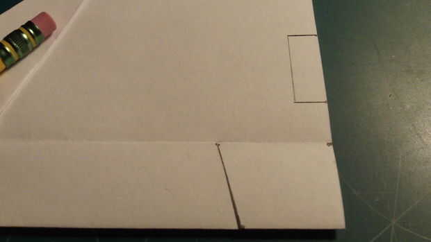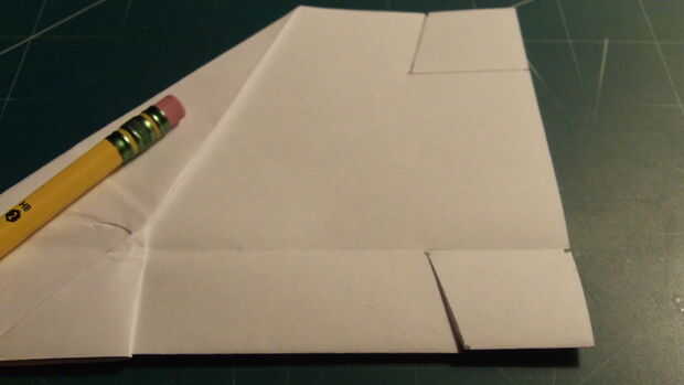 Doble las alas hacia abajo a lo largo de las marcas de 1 pulgada realizadas en la parte delantera y trasera. A continuación despliegan y corte a lo largo de las líneas de las aletas. Luego marcar los ascensores. Medida 0.5 pulgadas hacia afuera del ala de la raíz y haga una marca. Luego medir otra pulgada más hacia fuera y hacer otra marca. Luego medida 0,375 pulgadas hacia el interior de cada una de estas marcas y hacer líneas.